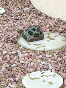 This time, I begin to look for the little things along my walk. I look for the art in the front yards, along the homes, the charming little yard statues. I find that there is a lot of self expression here.