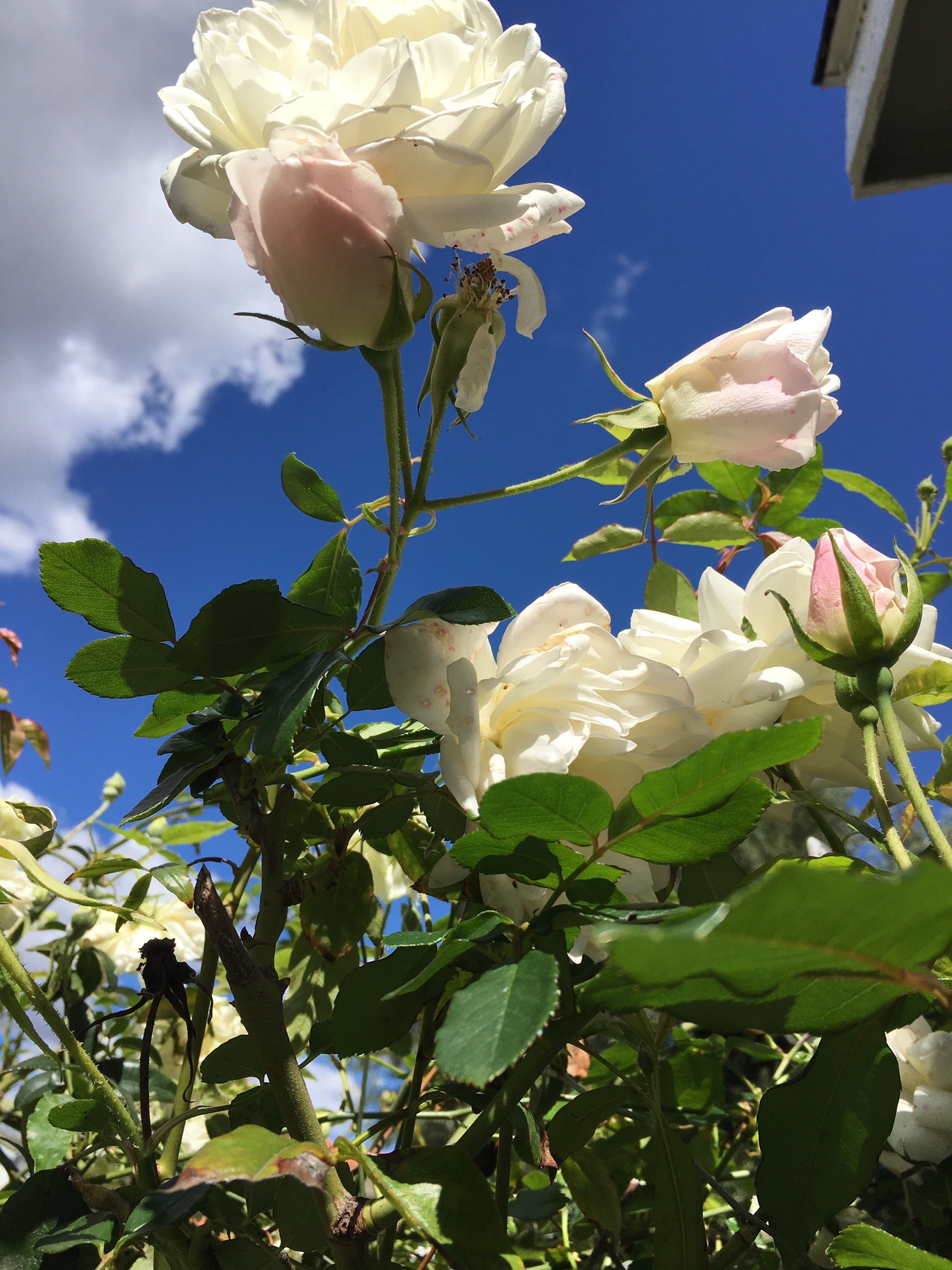 Forever roses, climbing, blooming, reaching across the arbor.