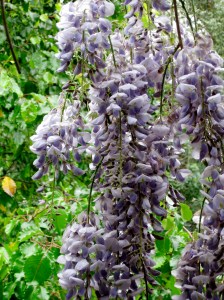 The rain is dissipating, the clouds are blowing off to other regions and though the ground is still damp the wisteria have decided to burst open filling the yard with fragrant, lovely lavender blossoms. The bees aren’t interested in us anymore, they are drunk on the sweet-smelling nectar oozing from these springtime visitors.